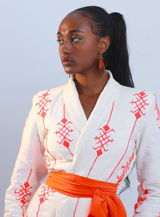 Handmade Red Embroidered Full-Length Ethiopian Blazer