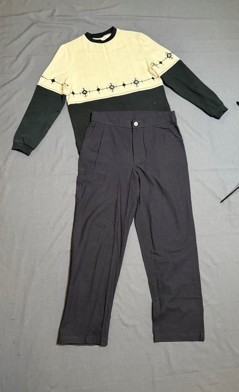 Men’s Half-Black Half-White Sweater & Trouser Set – Minimal Embroidery | Modern Ethiopian Style