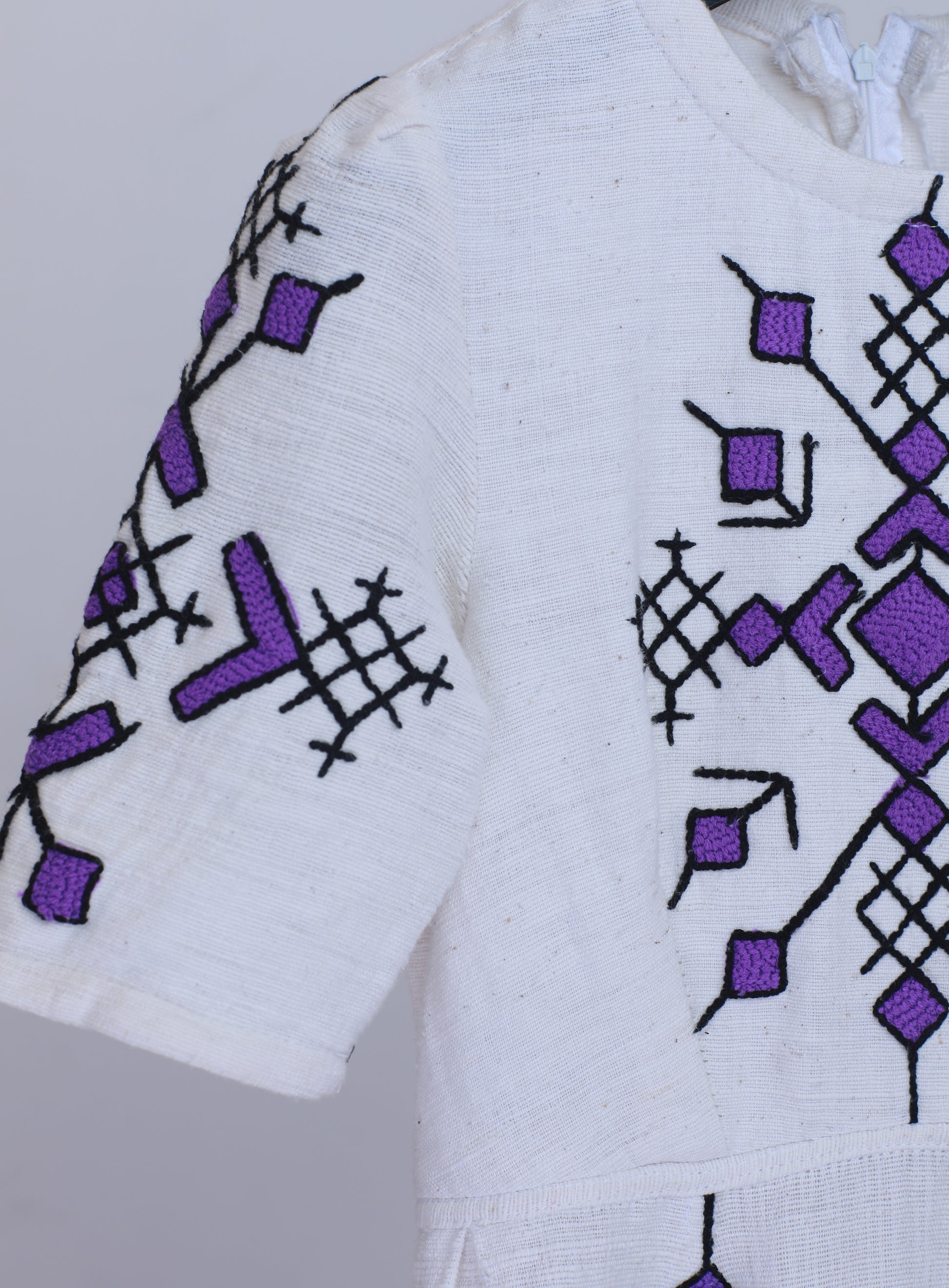 Step into the world of modern Ethiopian fashion with our stunningly unique Habesha Kemis. This contemporary take on the traditional Ethiopian dress combines intricate purple Habesha embroidery with modern silhouettes and luxurious fabrics, creating a breathtaking fusion of heritage and haute couture. Whether you're attending a cultural celebration or a high-profile event, this Habesha kemis will make you stand out with its elegance, sophistication, and unmistakable Ethiopian flair. Experience the essence of Ethiopian beauty and style like never before with our exquisite Habesha Kemis, celebrating the rich tapestry of Ethiopian culture and modern Ethiopian fashion.